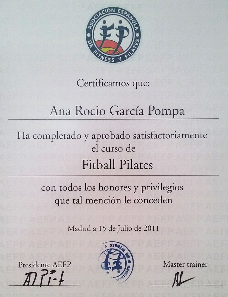 Formación obtenida y diplomas en el método Pilates suelo (MAT).