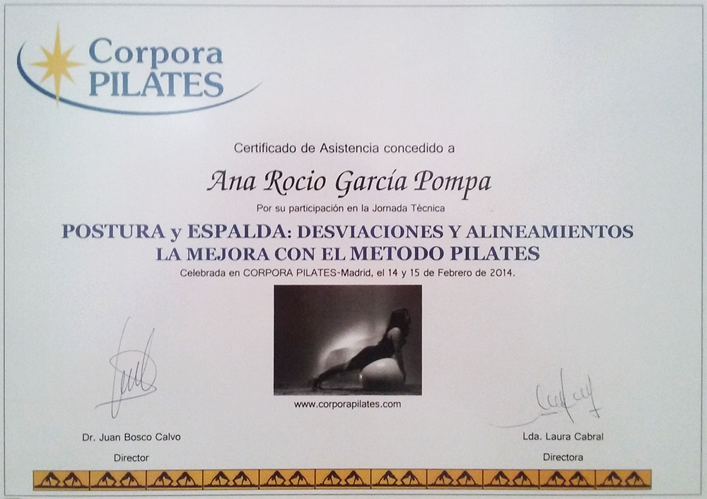 - Postura y Espalda: Desviaciones y Alineamientos. Madrid 2014. Corpora Pilates.