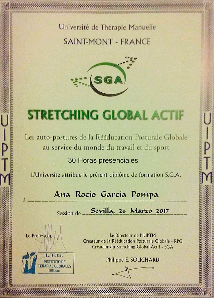 - Stretching Global Active. Sevilla 2017. Université de Therapie Manuelle Saint-Mont France.